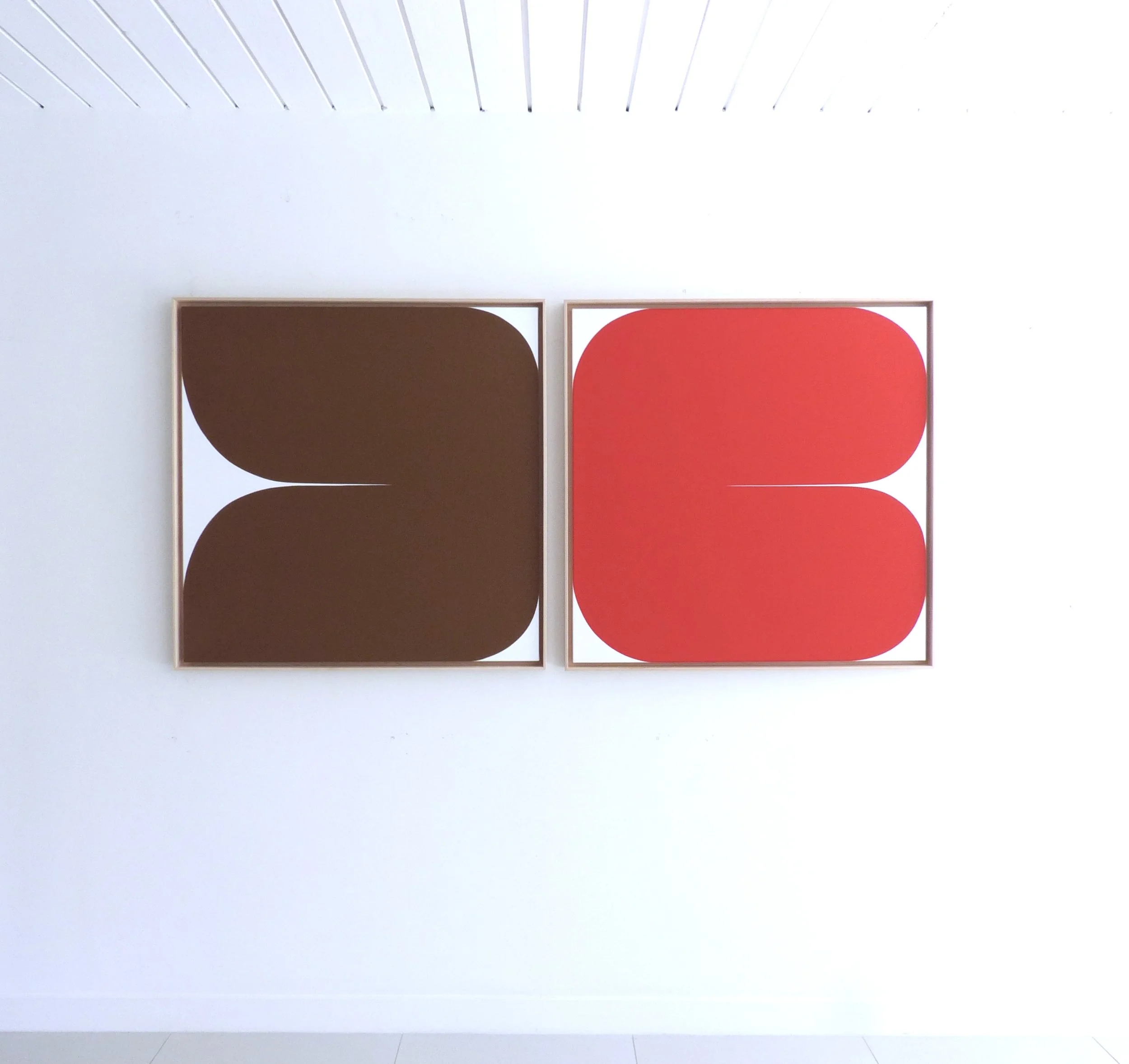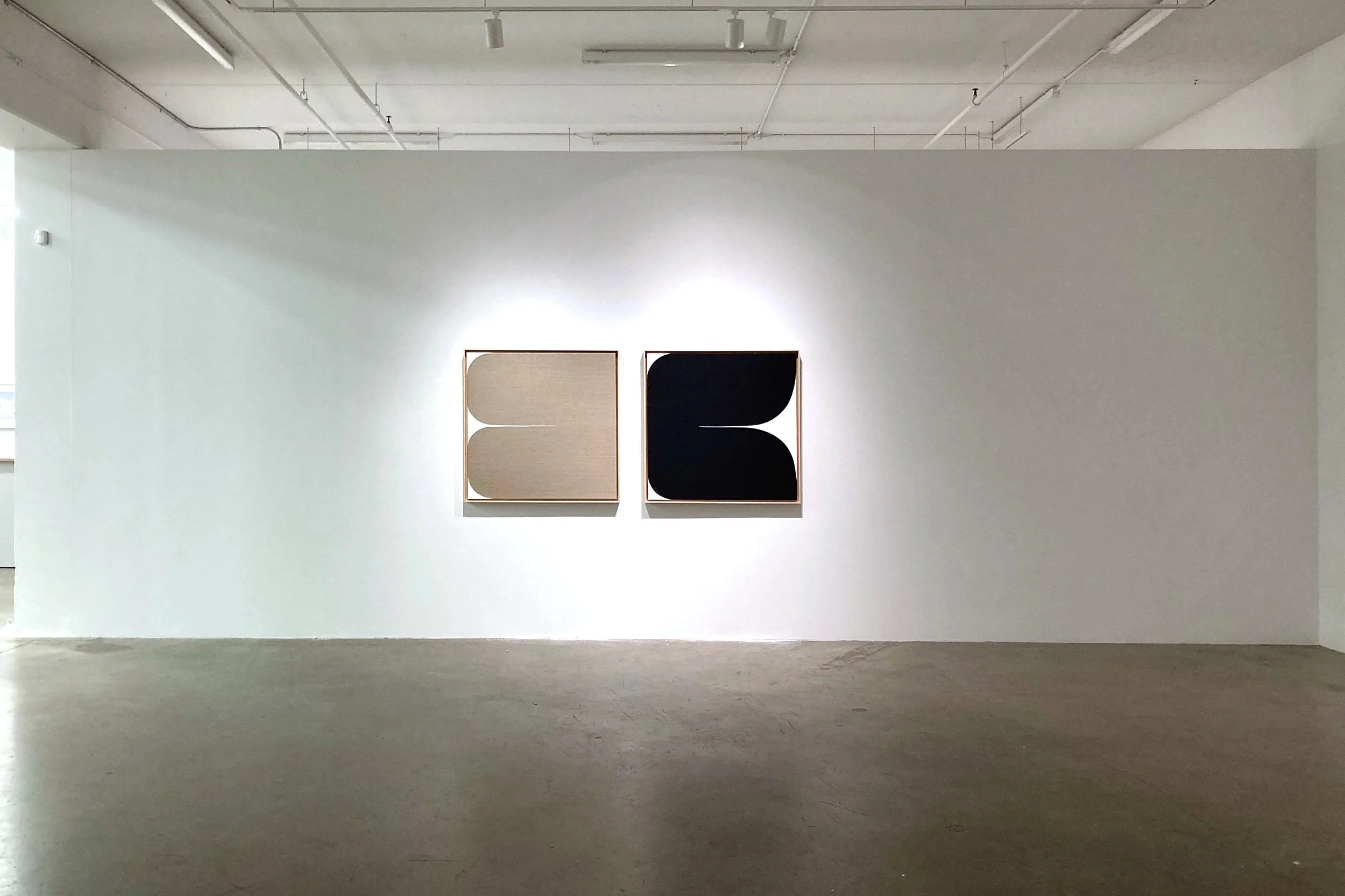Within these colour concepts, My Heart is a Thousand Colours explores the idea of a “contrapuntal diptych.” In music, “counterpoint” is the relationship between two or more musical lines which are harmonically interdependent yet independent in rhythm and melodic contour. Its use is especially masterful in the compositions of J.S. Bach, but the device is prevalent in many genres. Counterpoint is different from harmony in that it doesn’t ride the same line in order to make one harmonically sound melody, but rather weaves in and out of a dialogue, providing tension with its own voice. A modular and immersive installation of paintings is a striving for a similar vibration and rhythm, plus light bouncing effects, and to conjure a sense of pleasurable longing within opposing intensities in saturation, lightness and darkness and warm and cool associations. It is, perhaps also an effort to stabilize a mutable force; to play at ordering nature while embracing its mysteries. In doing so, we can strive for a delicate joy: in the pleasure of the travelling eye, in reorganization, in preference, in separation and connection, and in togetherness.